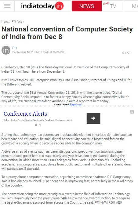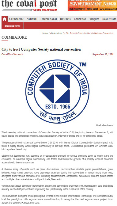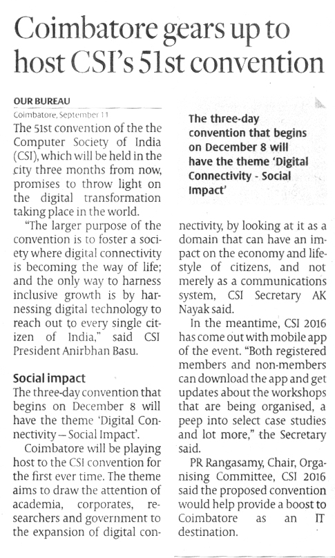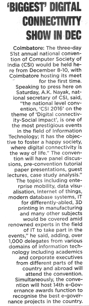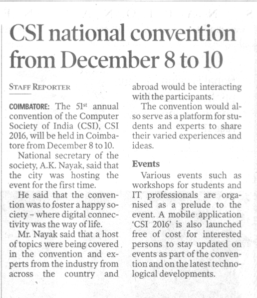 CSI 2016 ANNUAL CONVENTION HELD @ LEMERIDIAN, Coimbatore on JAN 2017 TIMES OF INDIA 24 January 2017 (Pg.4)
